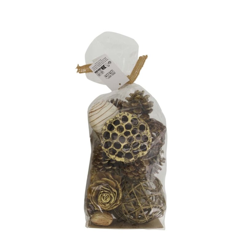 Dekorativer Potpourri-Mix in dunklen Braun- und Goldtönen