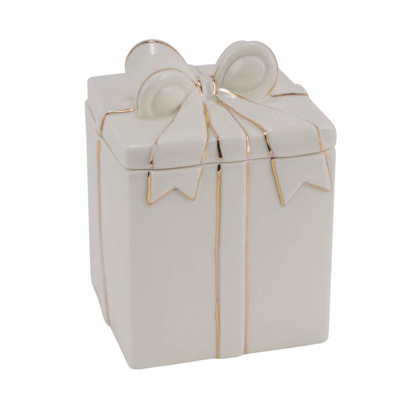 Gehlmann - Keramik-Geschenkbox - 10 cm - weiß/gold