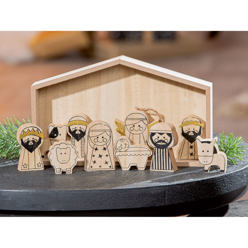 Gilde - Krippe & Figuren - 11tlg. - MDF - gold/natur